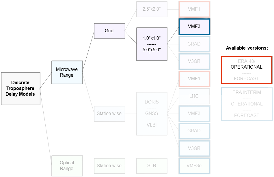 Signal delay caused by troposphere crossing is estimated interpolating the tropospheric products maps using Vienna Mapping Function 3 (VMF3) model [4]. Four maps are needed to perform the interpolation at best: